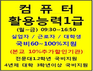 | 과정명 | 컴퓨터활용능력1급(필기+실기) [종료] |