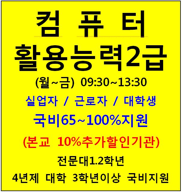 | 과정명 | 컴퓨터활용능력2급(필기+실기) [관리종료] |